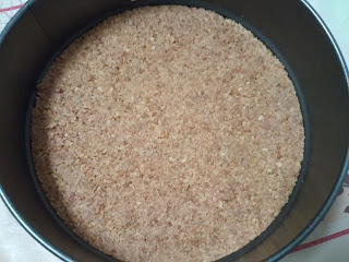 Picaremos las galletas en un procesador de alimentos hasta dejarlas hechas polvo. Derretiremos la mantequilla y la mezclaremos con el polvo de galletas. Lo pondremos en la base de nuestro molde, presionando.